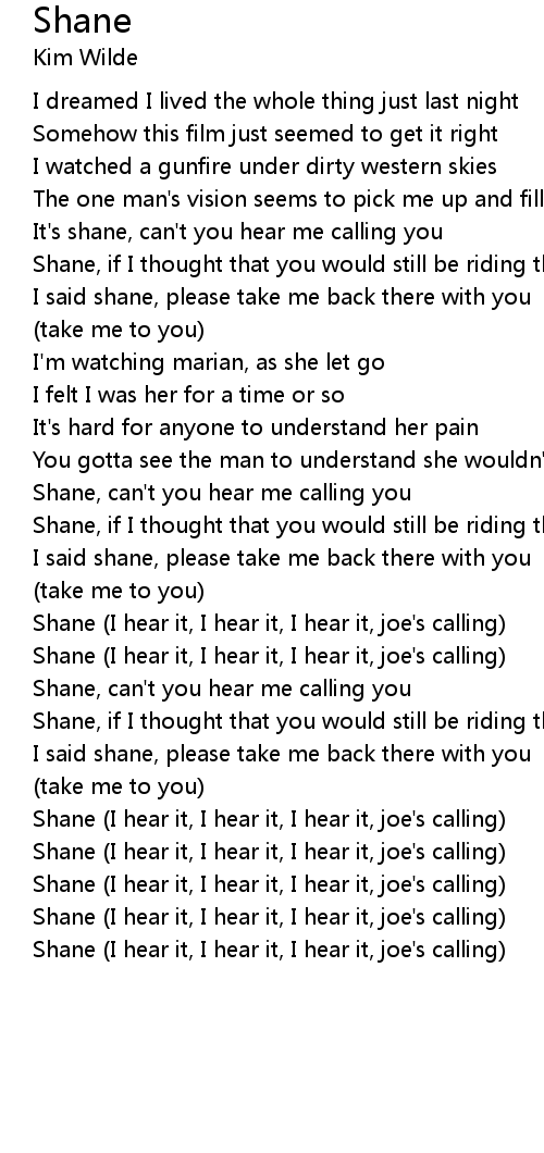 Shane (I hear it, I hear it, I hear it, joe's calling)