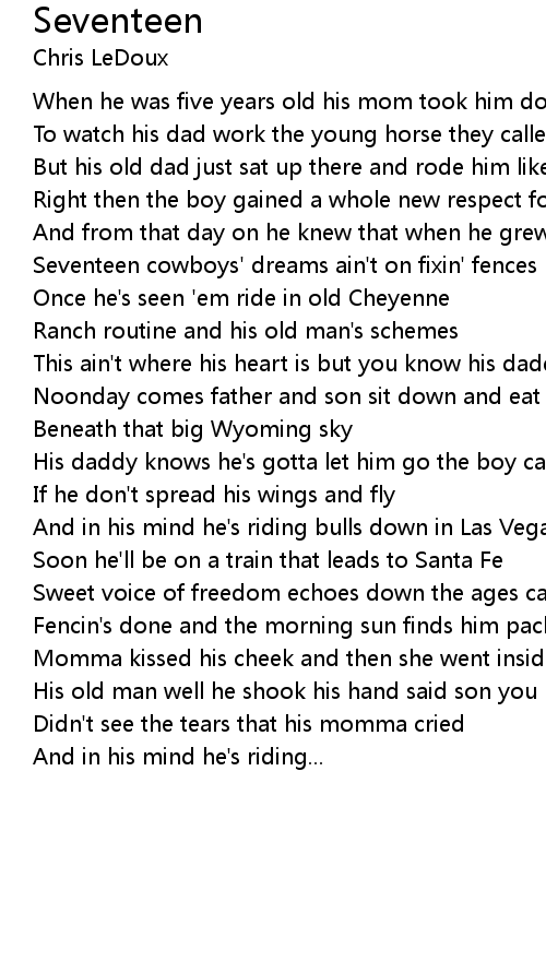 Seventeen cowboys' dreams ain't on fixin' fences |