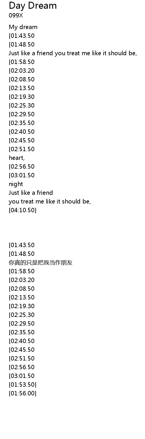 | [00:10.50][01:43.50] | I dream of you everyday of my life, |