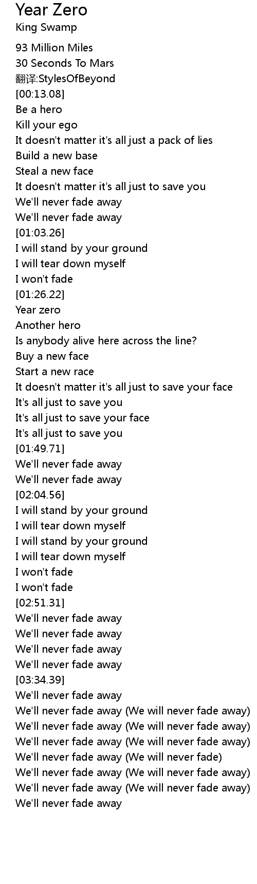 | [04:00.11] | We' ll never fade away We will never fade away |