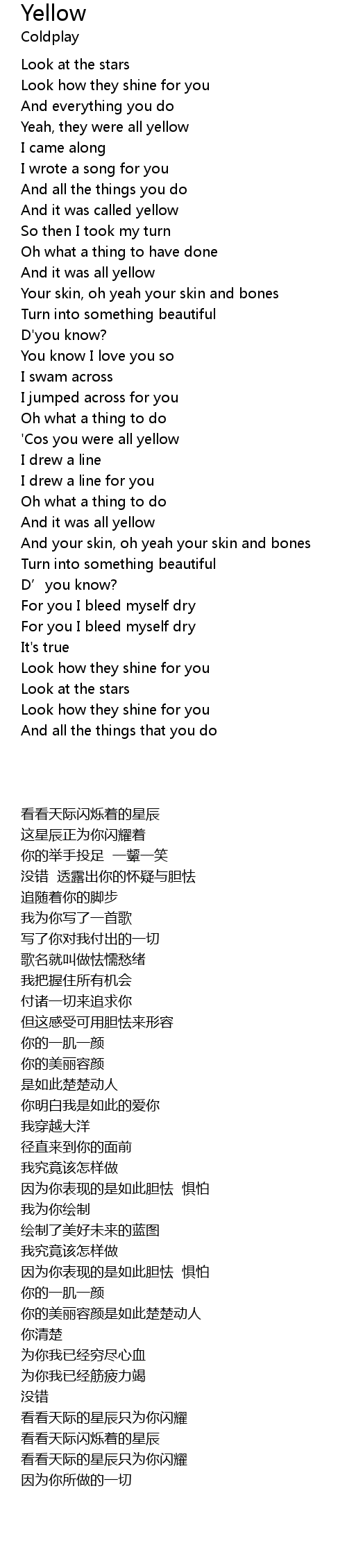 | [02:16.370] | 'Cos you were all yellow |