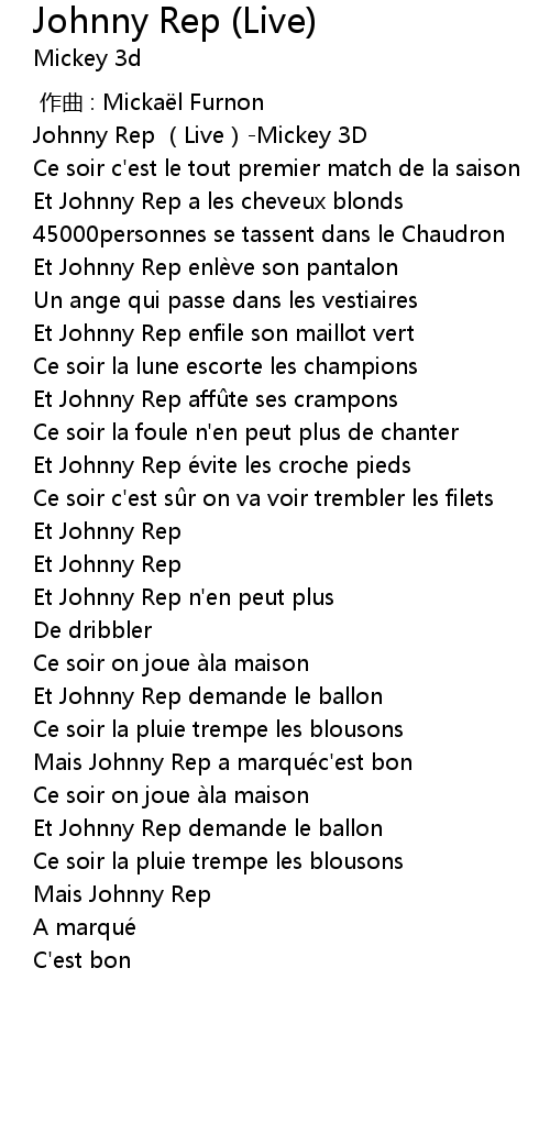 | [01:47.185] | Mais Johnny Rep a marque c' est bon |