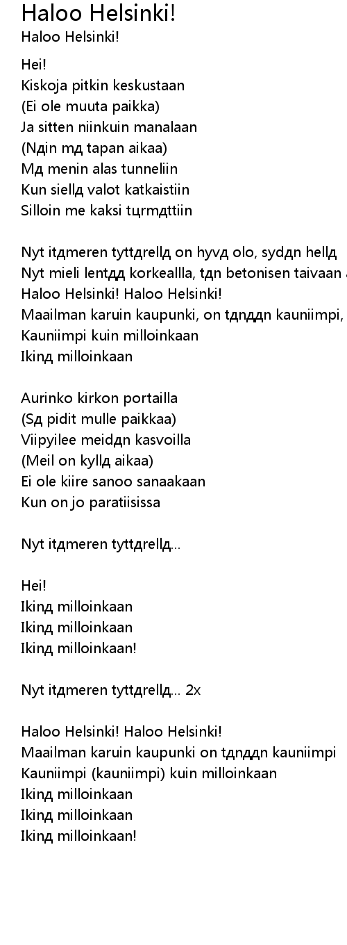 | Maailman karuin kaupunki, on tдnддn kauniimpi, | |