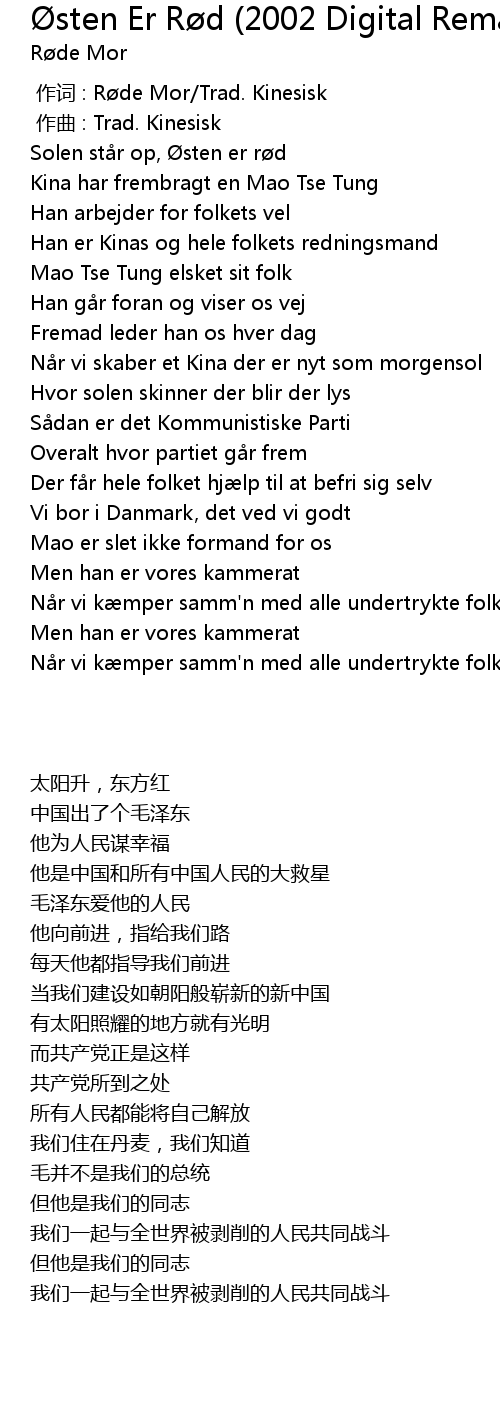 | [00:00.000] | 作词 : Røde Mor/Trad. Kinesisk |