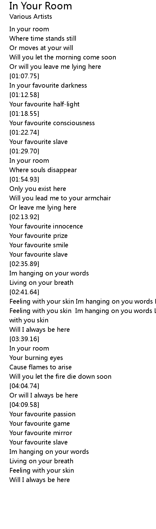 Feeling with your skin Im hanging on you words Living on your breath Feeling with you skin Im hanging on you words Living on your breath Feeling with you skin |