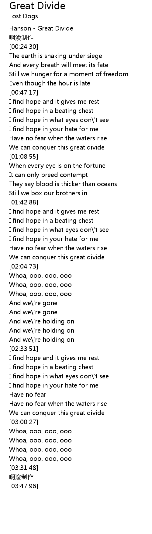 | [02:56.95] | We can conquer this great divide |