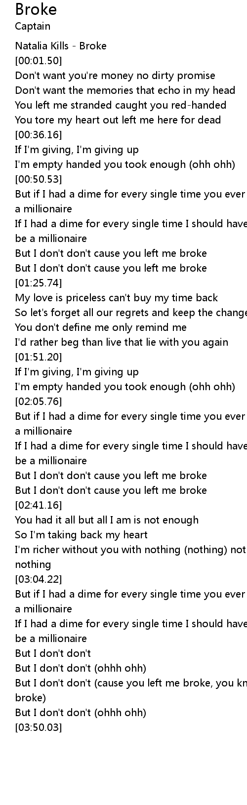 But I don't don't (cause you left me broke, you know you left me broke) |