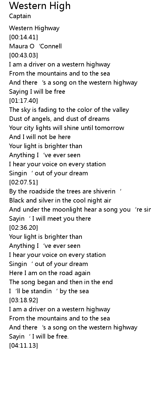 | [01:06.36] | And there‘s a song on the western highway |