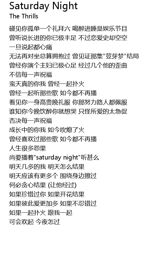 | [02:08.52] | 尚要播着"saturday night"听甚么 |