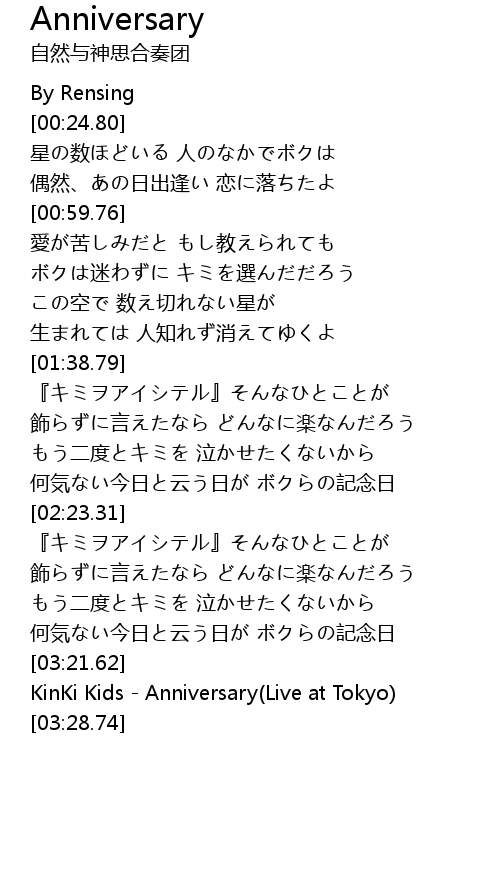 | [03:24.96] | KinKi Kids - Anniversary(Live at Tokyo) |