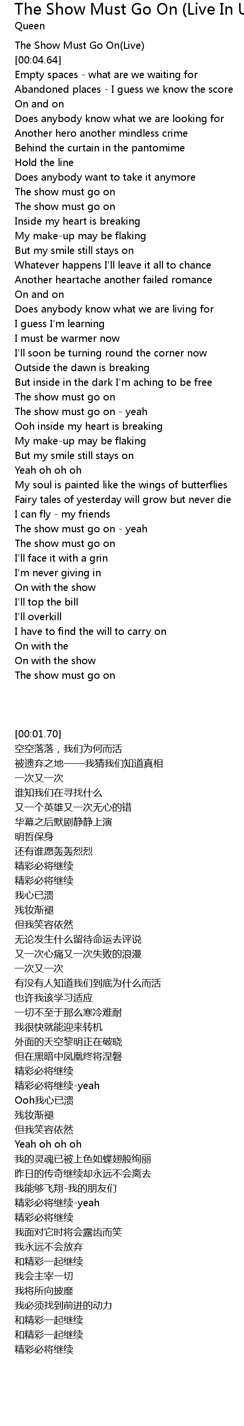[00:01.70] The Show Must Go On(Live)