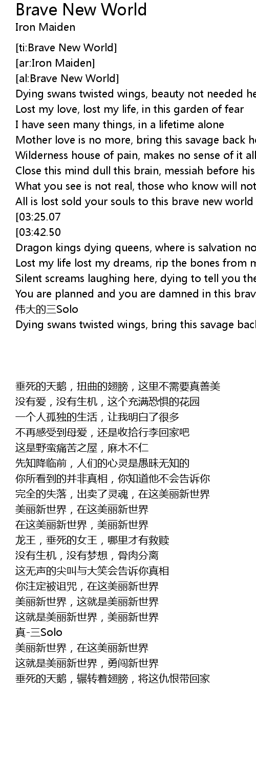 | [02:33.24][03:42.50][05:39.64] | In a brave new world, a brave new world |