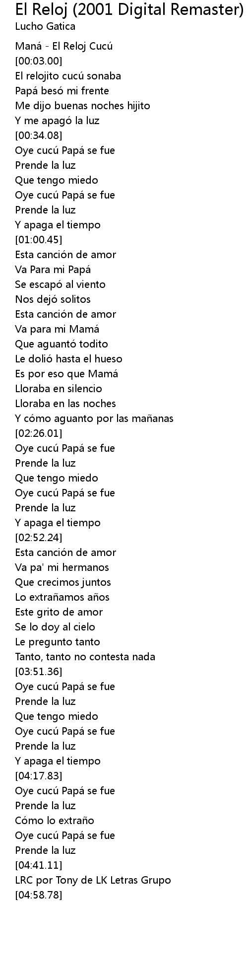 | [00:01.00] | Mana El Reloj Cucu |