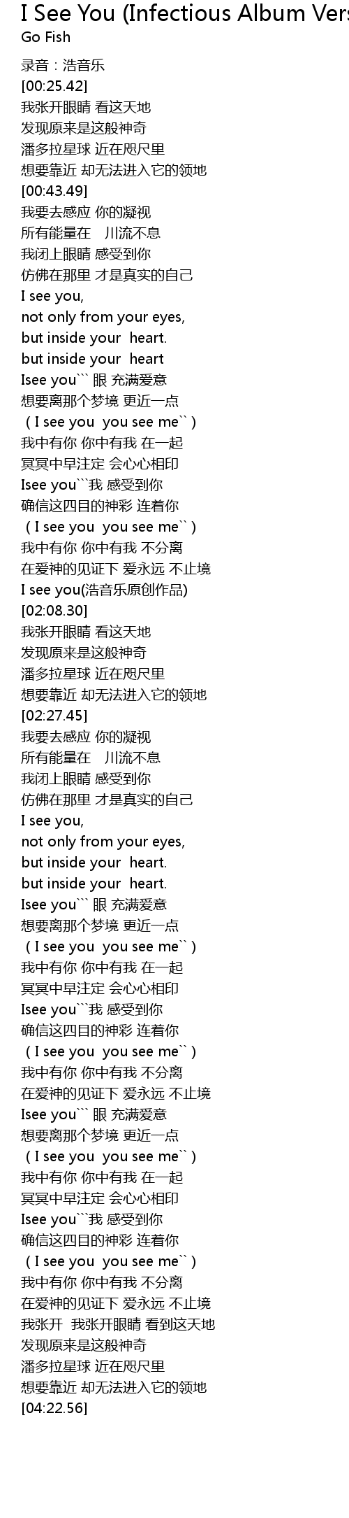 | [03:26.35] | Isee you yǎn chōng mǎn ài yì |