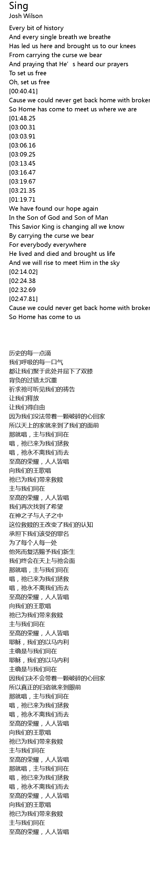 | [03:25.79][03:00.31][01:48.48][00:53.77] | So sing, God is with us |