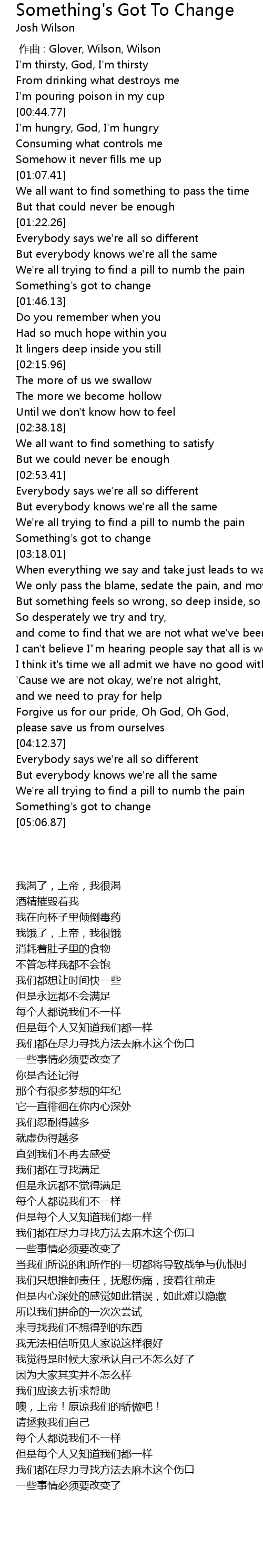 | 歌曲 | Something's Got To Change |