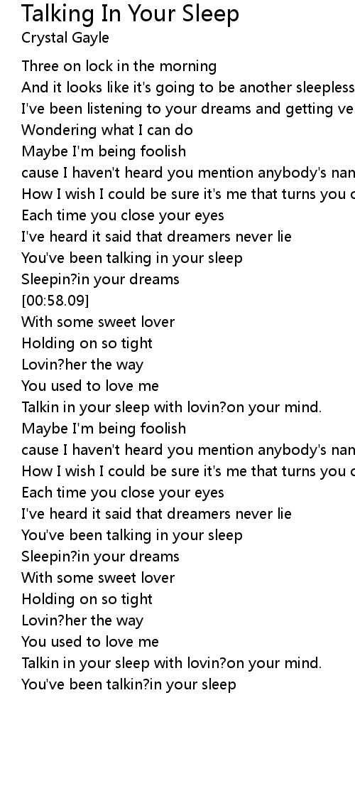 Talkin in your sleep with lovin?on your mind. |