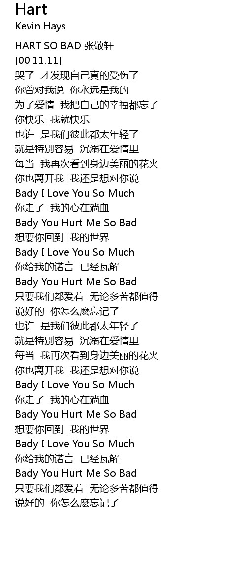 | [00:01.38] | HART SO BAD 张敬轩 |