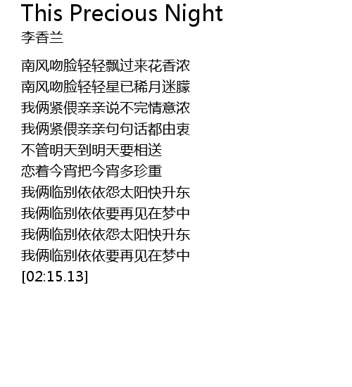 | 歌曲 | This Precious Night |