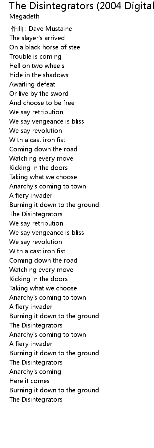 | 歌曲 | The Disintegrators (2004 Digital Remaster) |