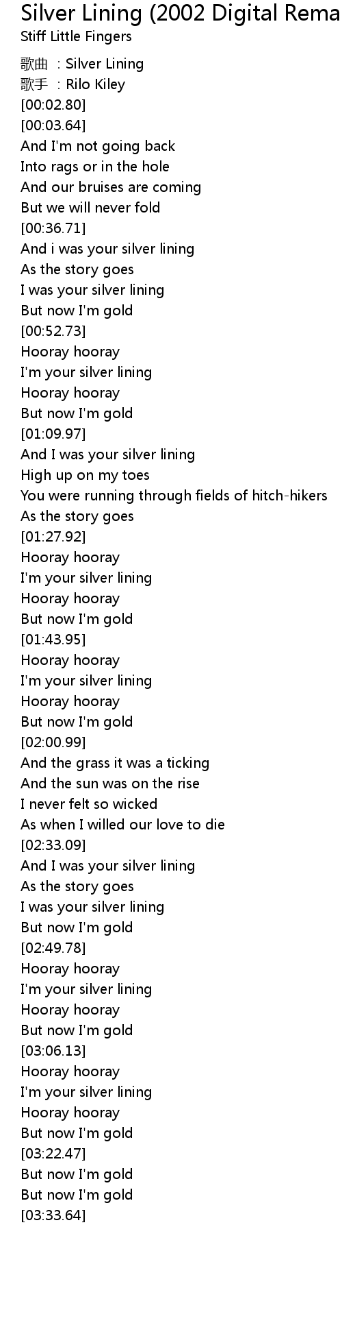 | [02:53.83] | I' m your silver lining |