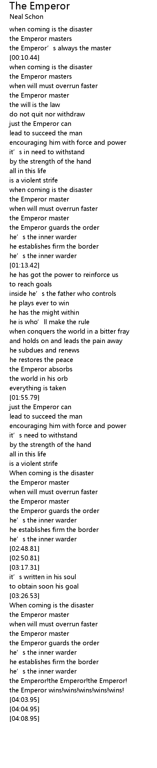 | [03:59.88] | the Emperor wins!wins!wins!wins!wins! |