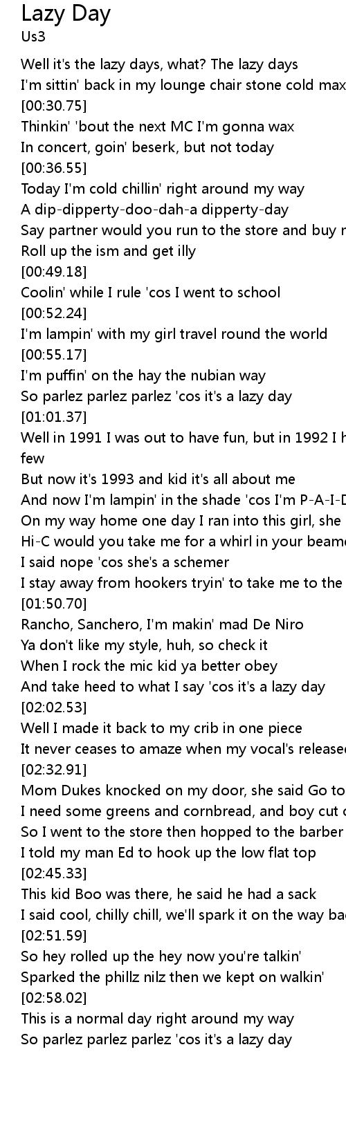 And take heed to what I say 'cos it's a lazy day |