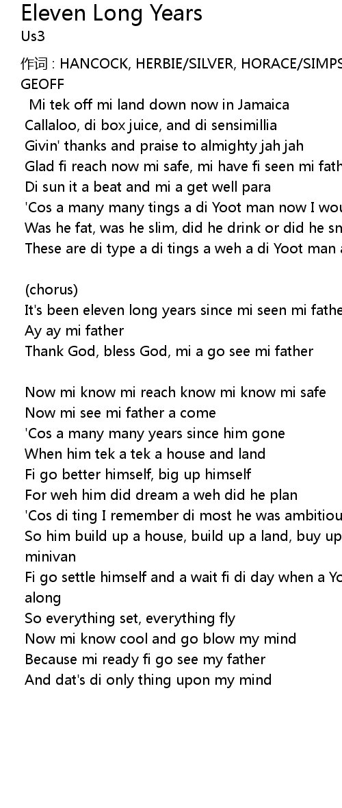 | It's been eleven long years since mi seen mi father | |