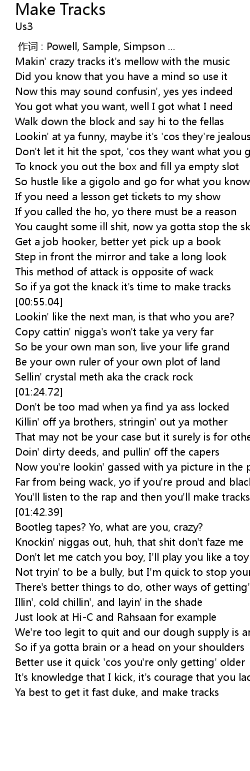 | [00:52.73] | So if ya got the knack it' s time to make tracks |