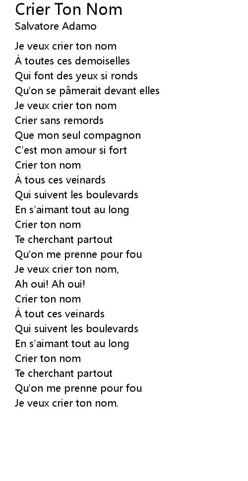 | Je veux crier ton nom, | |
