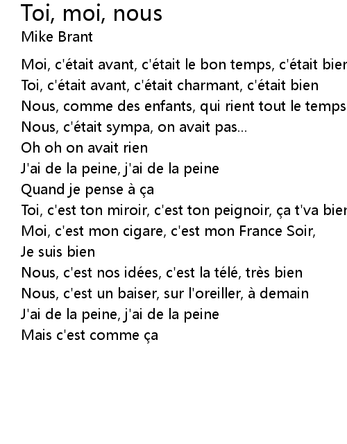 | 歌曲 | Toi, moi, nous |