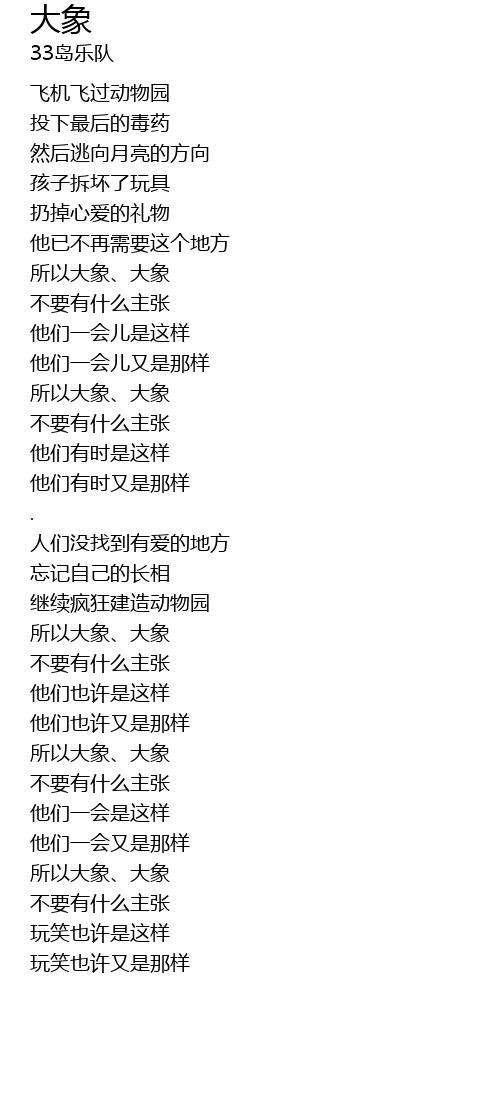| [02:32.51] | suǒ yǐ dà xiàng dà xiàng |
