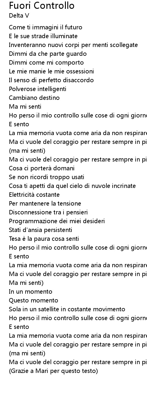 | 歌曲 | Fuori Controllo |