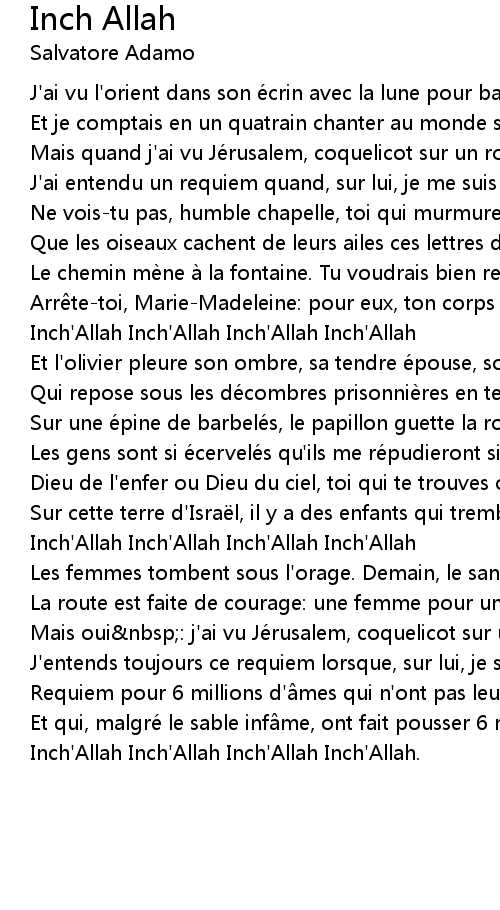 | Inch' Allah Inch' Allah Inch' Allah Inch' Allah. |