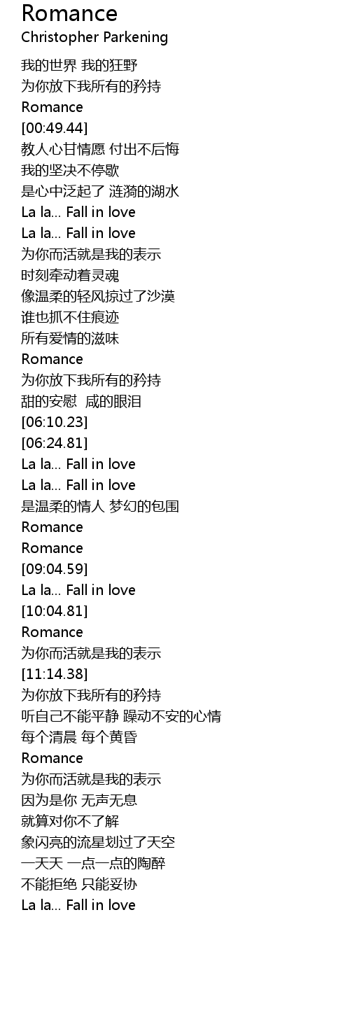 | [00:27.60] | wǒ de shì jiè wǒ de kuáng yě |