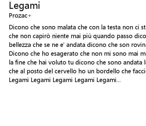 | Dicono che sono malata che con la testa non ci sto piu dicono che sono bugiarda che non capiro niente mai piu quando passo dicono che ero bella di una bellezza che se ne e' andata dicono che son rovinata di un' intelligenza sprecata | |