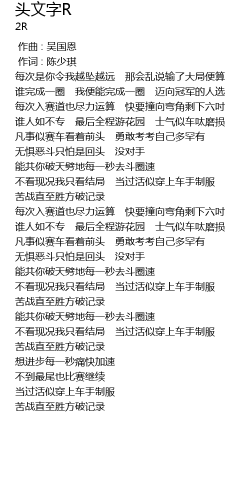 | [01:48.179] | 不看现况我只看结局 当过活似穿上车手制服 |