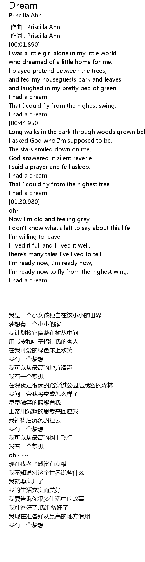 | [00:00.630] | zuò cí : Priscilla Ahn |