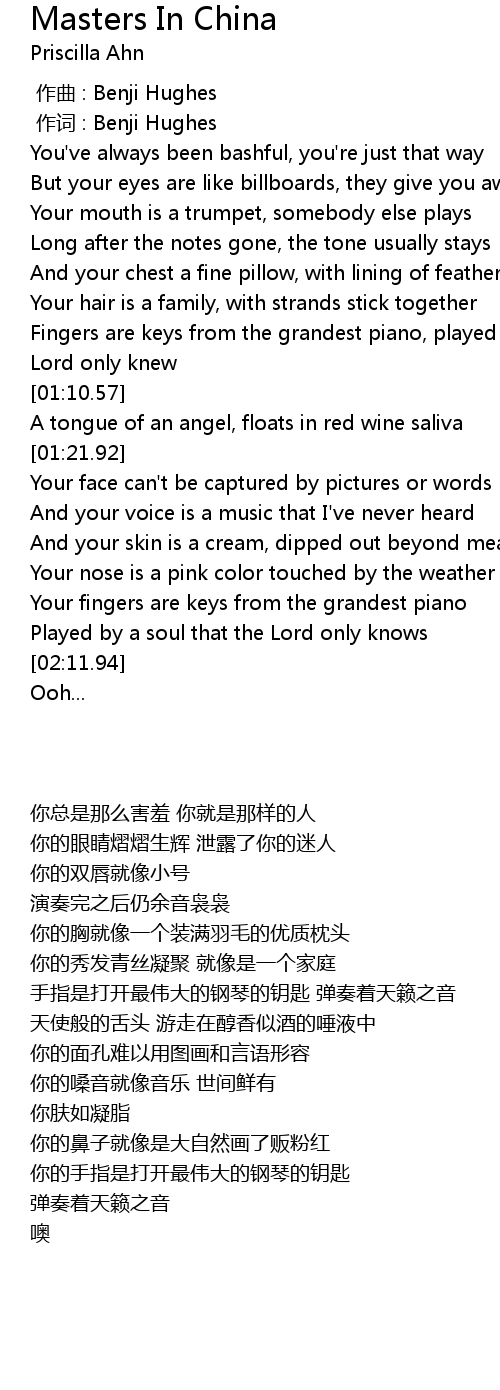 | [01:57.19] | Your fingers are keys from the grandest piano |