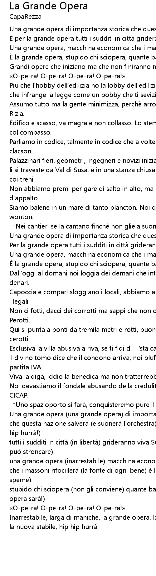 | È la grande opera, stupido chi sciopera, quante bastonate prenderà. | |