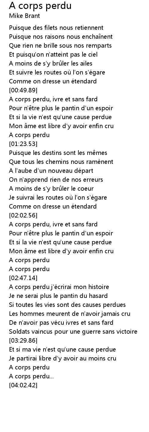 | [01:19.97] | A corps perdu |