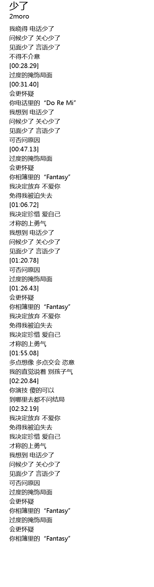 | [02:51.36] | 我想到 电话少了 |