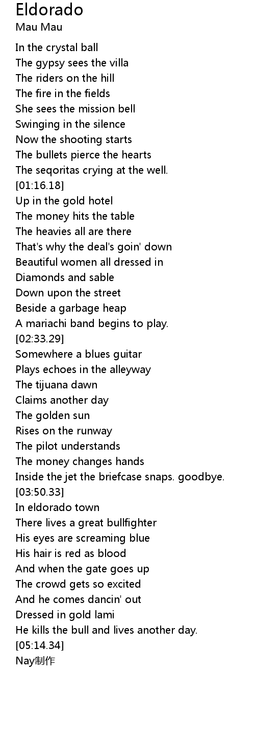 | [04:29.25] | In eldorado town |
