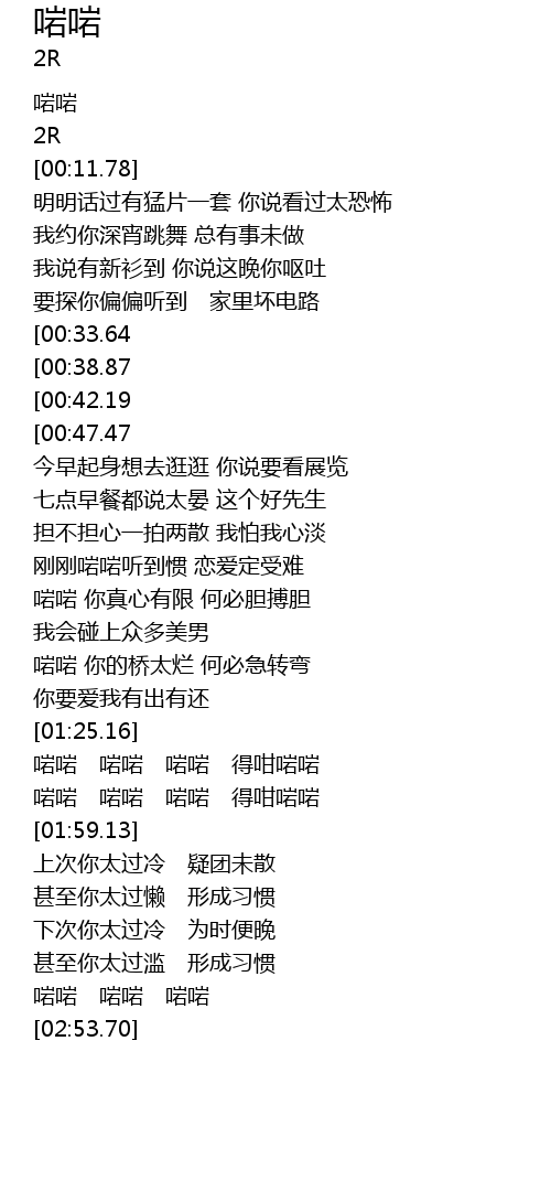 | [02:16.55][00:42.19] | 啱啱 你的桥太烂 何必急转弯 |