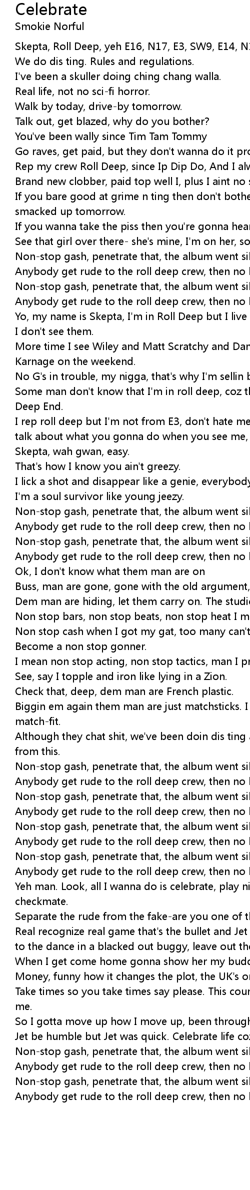 Non-stop gash, penetrate that, the album went silver, celebrate that. |