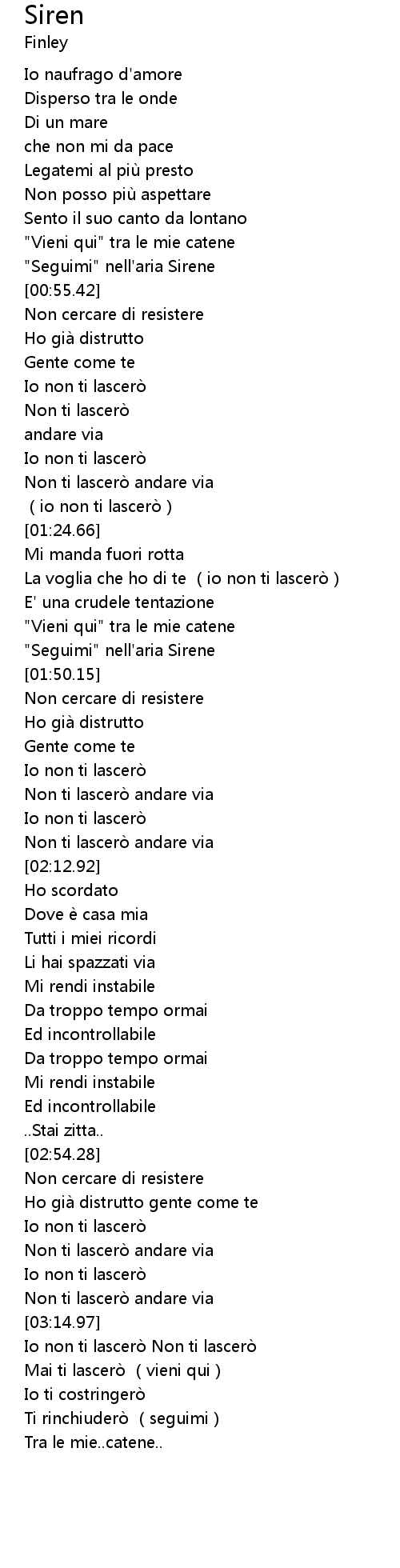 | [03:18.35] | Mai ti lascero vieni qui |