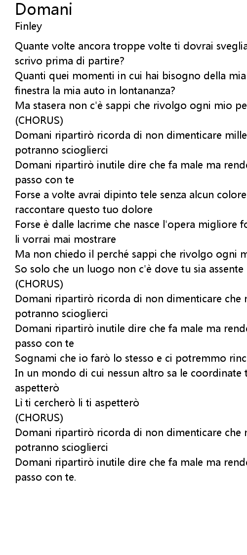| Domani ripartirò ricorda di non dimenticare mille o più chilometri non potranno scioglierci | |