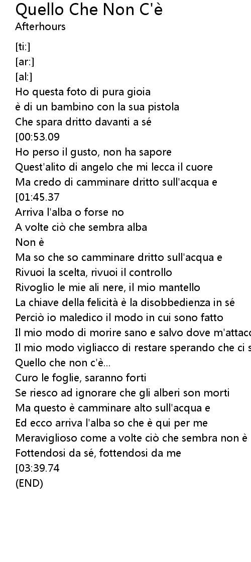 | [01:06.03] | Quest' alito di angelo che mi lecca il cuore |