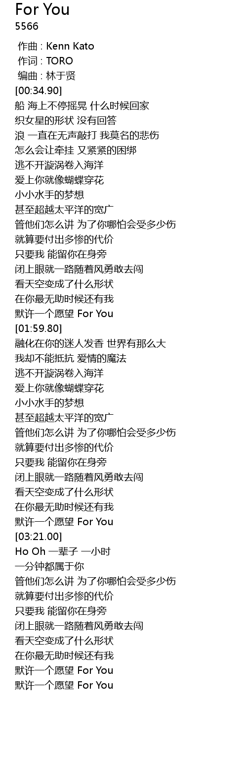 | [03:12.38] | mò xǔ yí gè yuàn wàng For You |