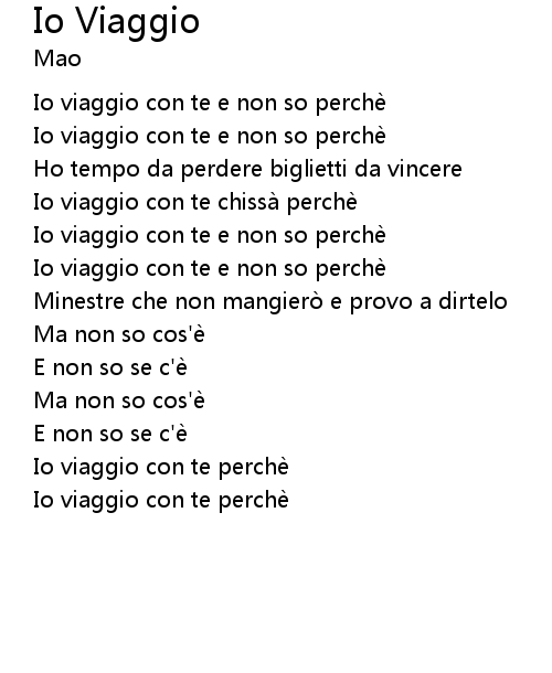| Io viaggio con te e non so perchè | |